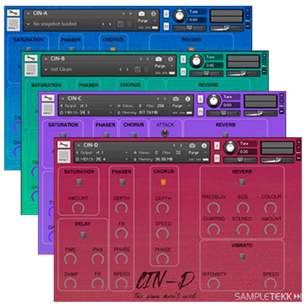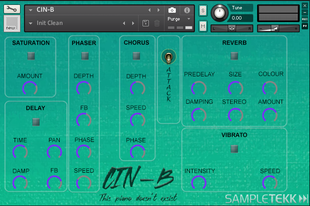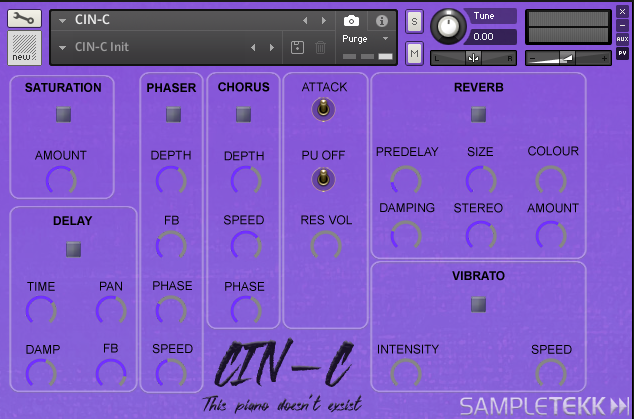 The CIN-B is a hybrid. We took a Grand Piano and morphed in the attack part from a Harpsichord. since the Harpsichord works with plucked strings, and also has a bright, almost brittle timbre, the tone produced in the CIN-B is totally unique. We then layered the sound with a mellotron mixed choir, most prominent in the lower velocities, so when played softly, the choir part is more in front, but when you hit it harder, the choir just gives a slight dreamy mist over the tone. The samples have been processed using some cool vintage outboard and even resampled using a ¼ inch analog tape machine. To add extra warmth and glue everything together. The result: A instrument that sounds like no other piano you’ve heard, that delivers a sound that we hope will inspire you as soon as you get it under your fingertips. Not much to tell, really. Load it, play it, and hopefully you will find it as fun to play, as it was to produce.